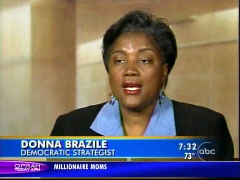 ABC's Wright took a similar approach on Thursday's Good Morning America: "Oprah's plug can turn a book into a bestseller, a movie into a blockbuster. And the question now is, can she turn a candidate into a President?" After citing how the guest list "includes Will Smith, Halle Berry, Jamie Foxx and John Travolta," as he segued into the above-quoted Brazile bite, Wright oozed: "Oprah's fundraiser is just the tip of the iceberg. Imagine the power of Oprah in an Obama campaign ad."