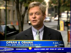 ROBIN ROBERTS: "But first in this half hour, as we said, Oprah Winfrey has announced that she is backing Barack Obama for President. With her millions of loyal, devoted fans who follow her advice every day, an Oprah endorsement sounds like a pretty good thing for Obama. But will the Oprah effect, well, can it be effective in the world of politics? ABC's David Wright has more. David?"